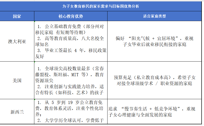 为子女教育移民的家长需求与目标国优势分析对于以子女教育为核心考量的移民家长而言,其核心诉求围绕 “为孩子构建更优质的成长与发展路径” 展开,具体可拆解为教育资源获取、国际视野培养、未来职业铺垫三大维度。以下将从家长核心关注点、典型目标国优势(以加拿大为例)及关键政策细节补充三方面展开分析,为这类家长提供更全面的参考。一、家长的核心关注点这类家长在选择移民目的...